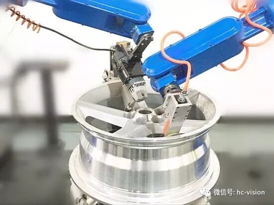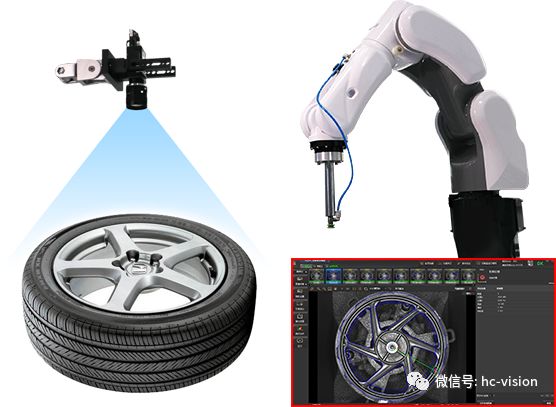 通过汇萃通用智能高速机器视觉平台代替人工后,对汽车轮毂气门芯位置进行在线检测及定位,控制机器人/机械手根据信号坐标抓取部件,依据坐标进行指定位置的存放等。