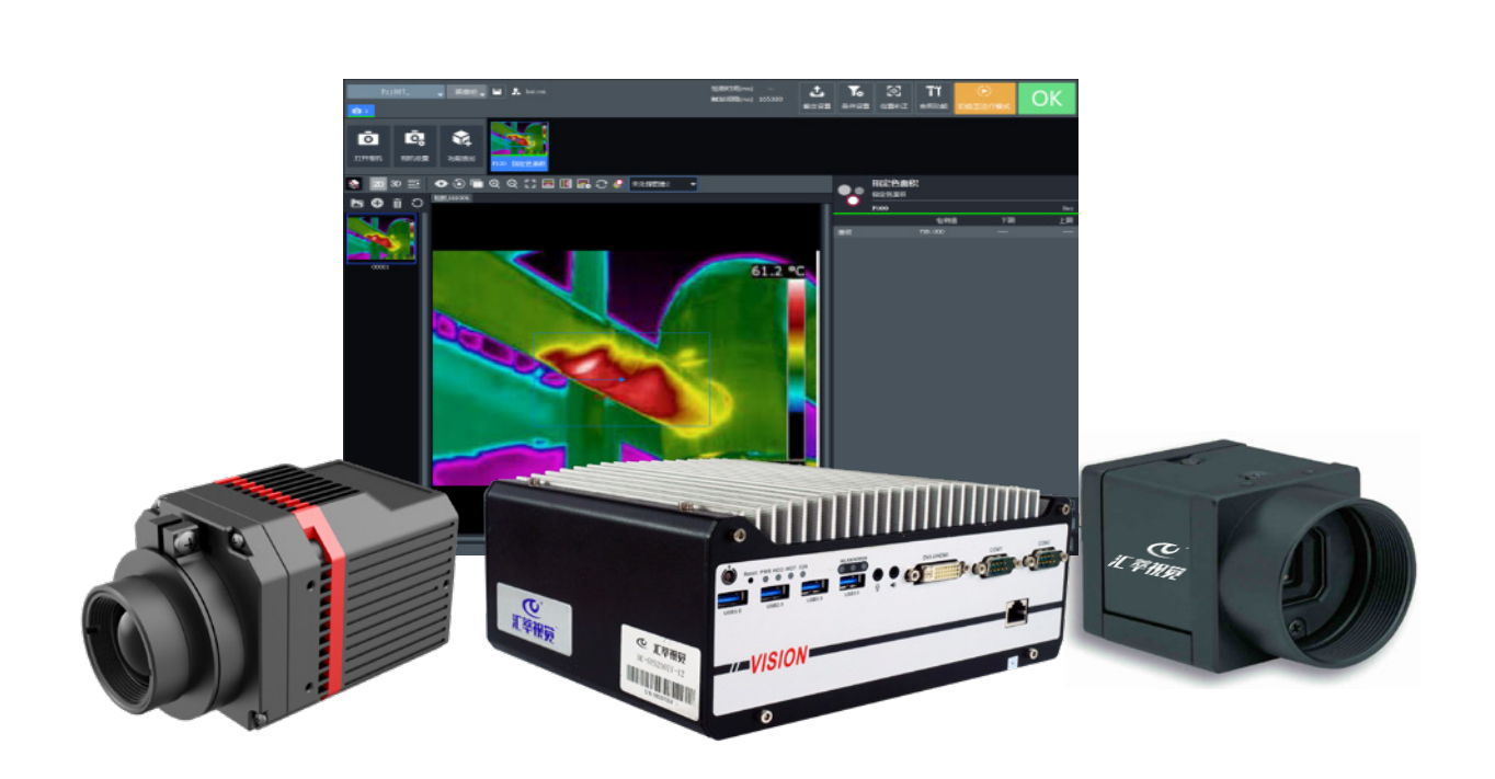红外热成像机器视觉系统,包括汇萃视觉软件、红外热成像工业相机、智能相机、视觉处理器等产品,可实现基于温度及图像的观瞄、测温视觉检测任务。